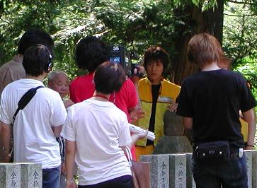 平成13年6月上旬にTBSのUSOジャパンという番組の取材・撮影の為、ジャニーズJrの村上信五・山下智久君の二人と取材スタッフが来山し、不思議な石を体験されました。 |